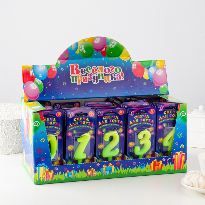 Шоу-бокс со свечами для торта цифры "Люминесцентные", 10,2 см, 50 штук