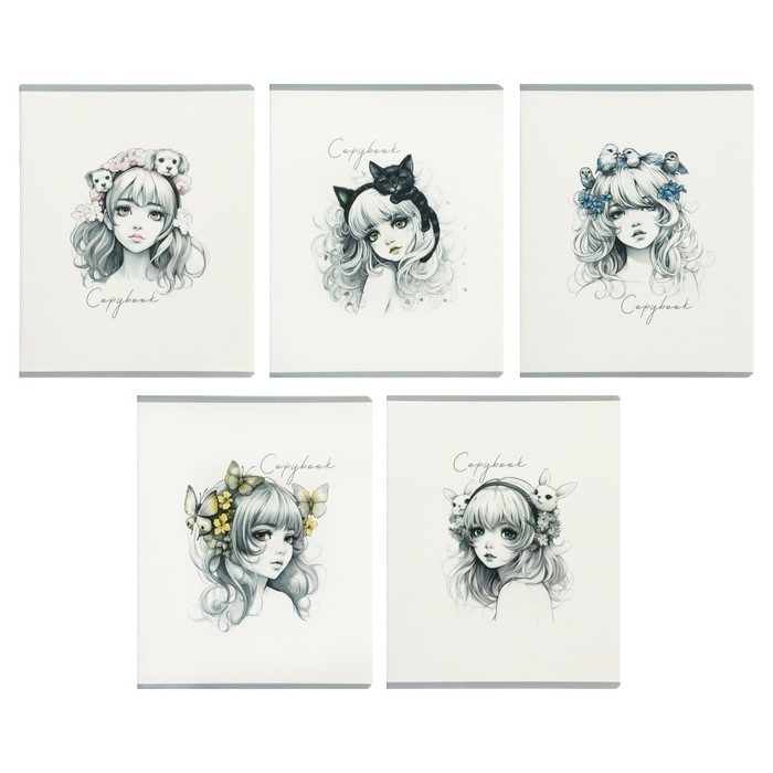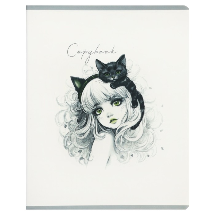 Тетрадь 48 листов в клетку на скрепке "Имба-леди", обложка мелованный картон, твин-лак, УФ-лак, блок офсет, МИКС