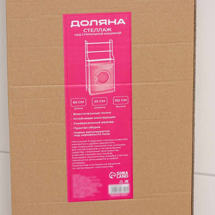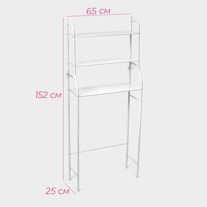 Стеллаж над стиральной машинкой, 65×25×152 см, цвет белый