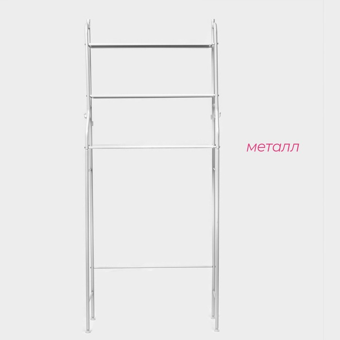 Стеллаж над стиральной машинкой со штангой для сушки, 66×25×175 см, цвет белый