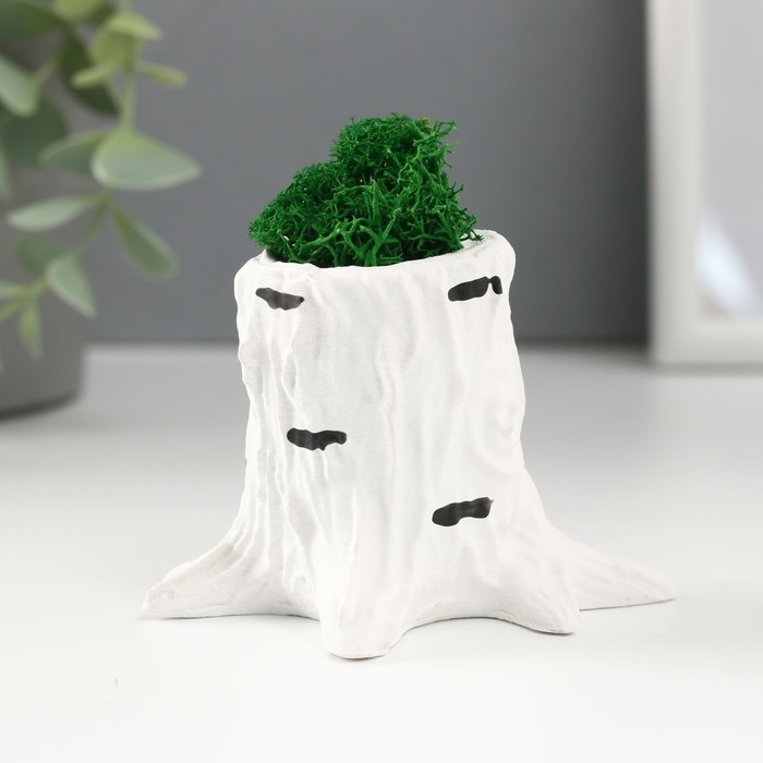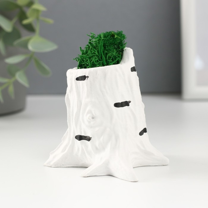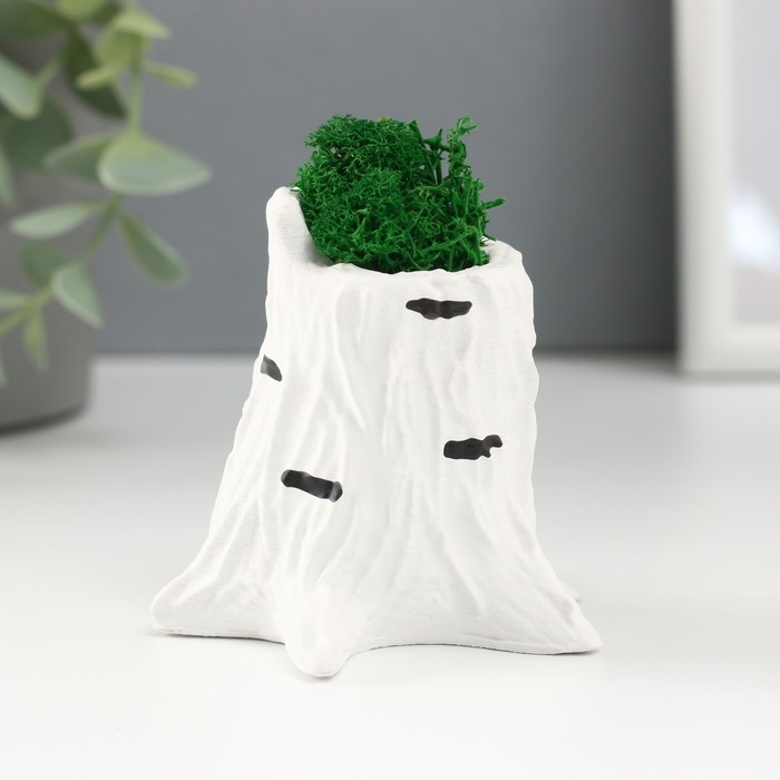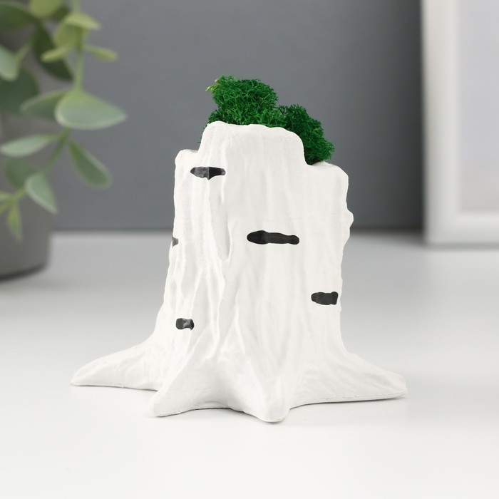 Кашпо бетонное "Пенек березка" 7,5х8,5х7 см со мхом (мох зеленый стабилизированный)