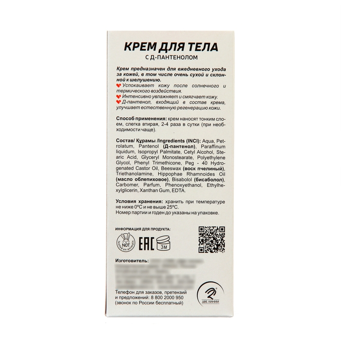 Домашняя аптечка Крем для тела с Д-пантенолом "Домашняя аптечка" - это косметическое средство, предназначенное для ухода за кожей тела. Он упакован в удобный тюбик.