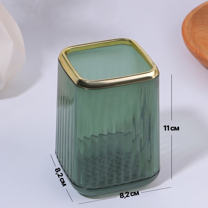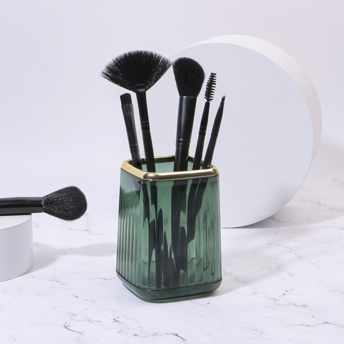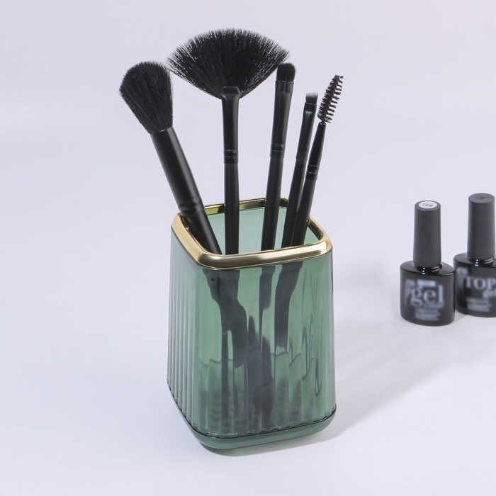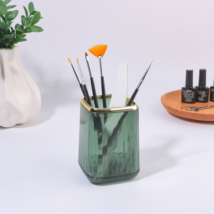 Органайзер - подставка для хранения маникюрных/косметических принадлежностей «GREEN», 11 × 8,2 × 8,2 см, цвет полупрозрачный/зелёный/золотистый