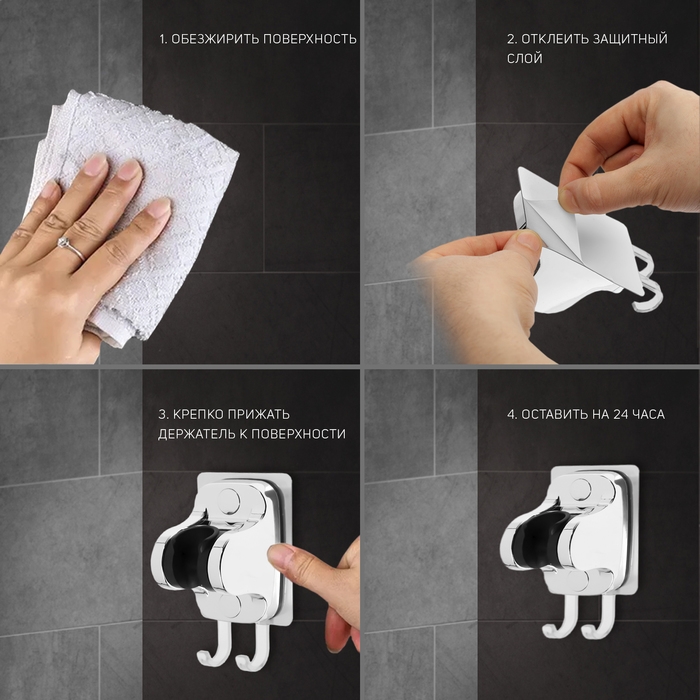 Держатель для душевой лейки ZEIN Z123, самоклеющейся, регулируемый, с крючком, хром