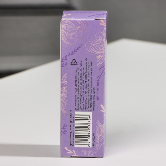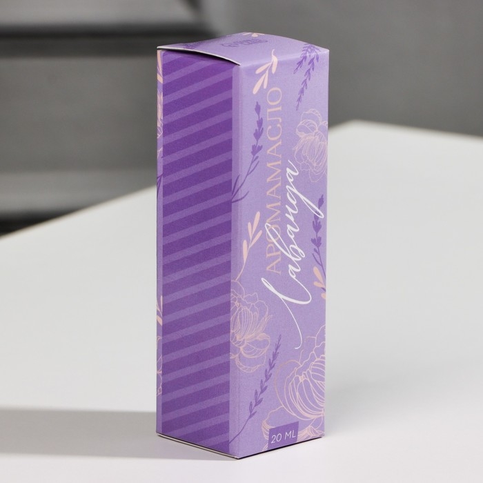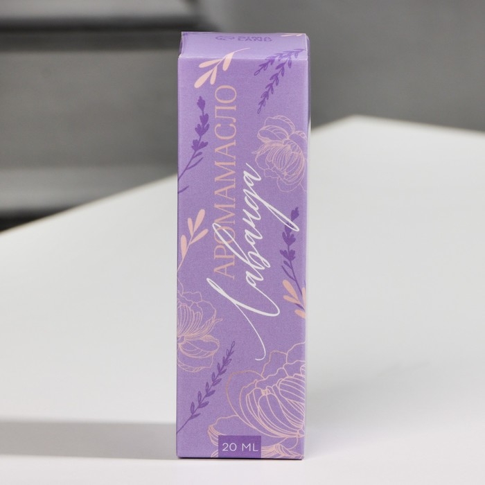Бутылочка объемом 10 мл заключена в красивую картонную коробочку с изображением лаванды.