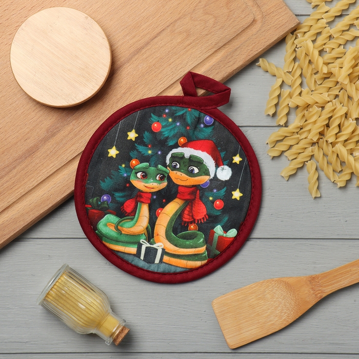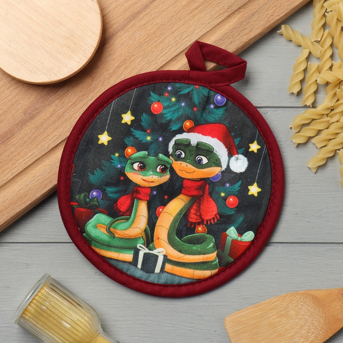 Новый год. Символ года. Змея. Прихватка Этель "Счастья" 17*17 см, 100% хлопок, саржа