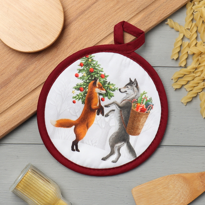 Новый год. Прихватка Этель "Новый год" 17*17 см, 100% хлопок, саржа