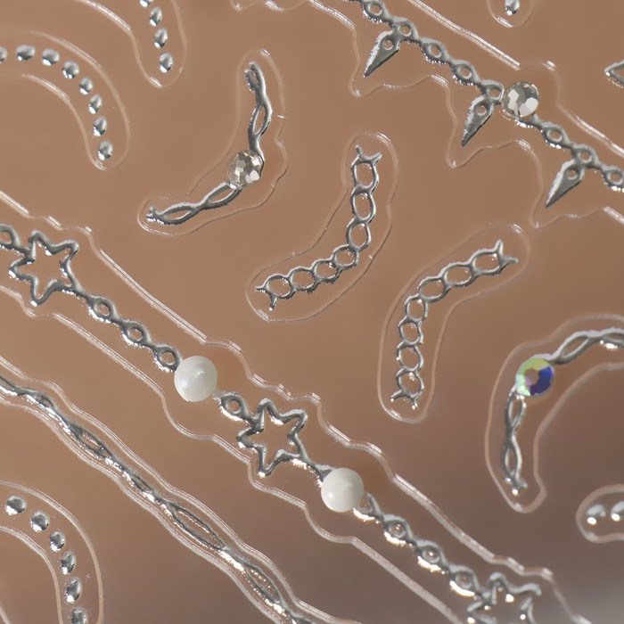 Наклейки для ногтей «Цепи», объёмные, фольгированные, со стразами и бусинами, цвет серебристый
