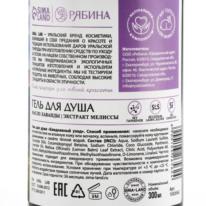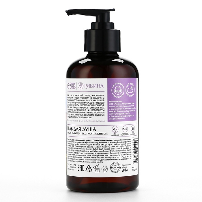 Гель для душа с маслом лаванды и экстрактом мелиссы, 300 мл, ECO LAB by URAL LAB