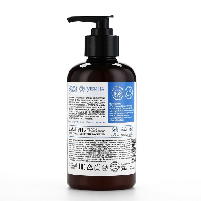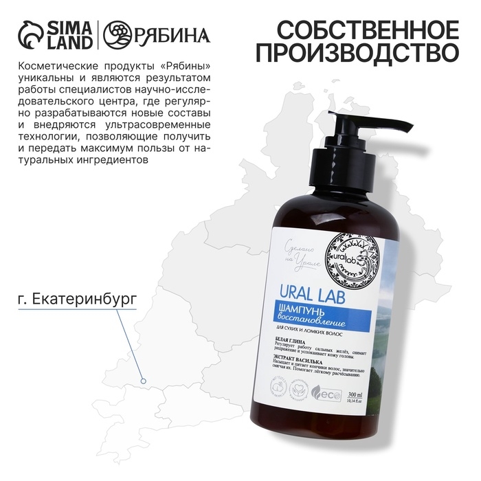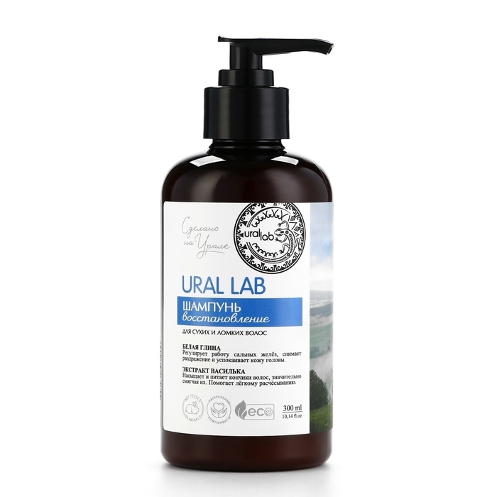 Шампунь для волос с белой глиной и экстрактом василька, восстановление, 300 мл, ECO LAB by URAL LAB