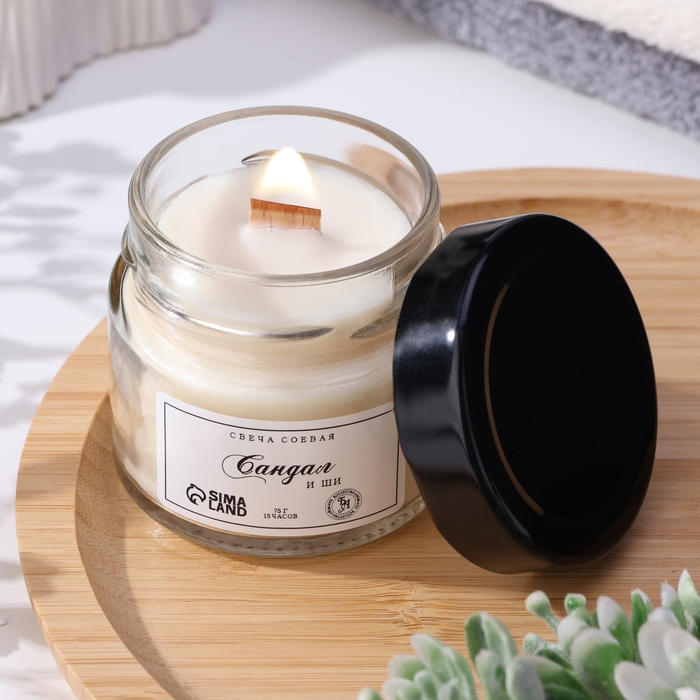 Свеча ароматическая из соевого воска в банке, 75 г, сандал и ши