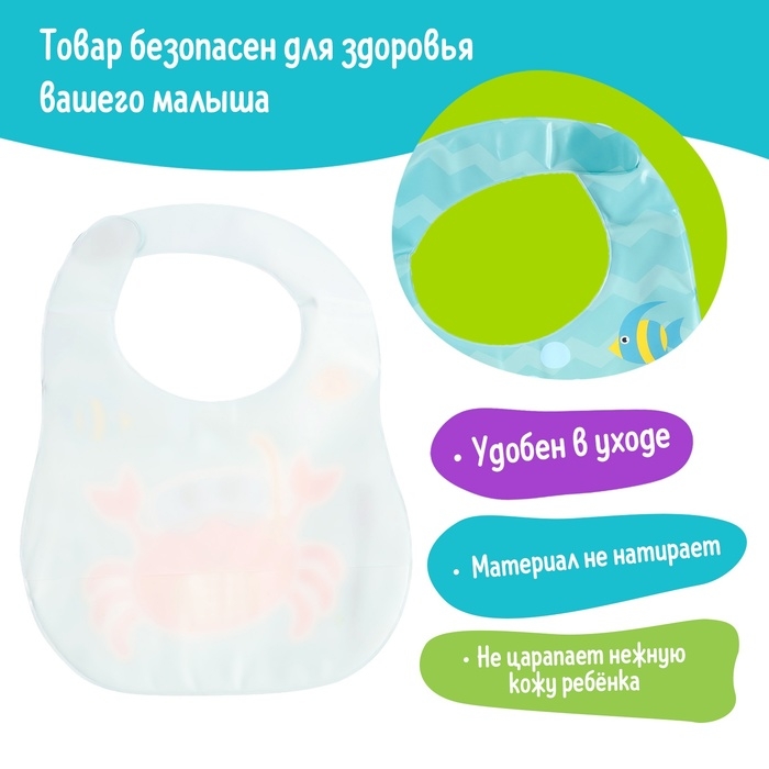Нагрудник для кормления «Любимый малыш: Крабик», непромокаемый, цвет голубой