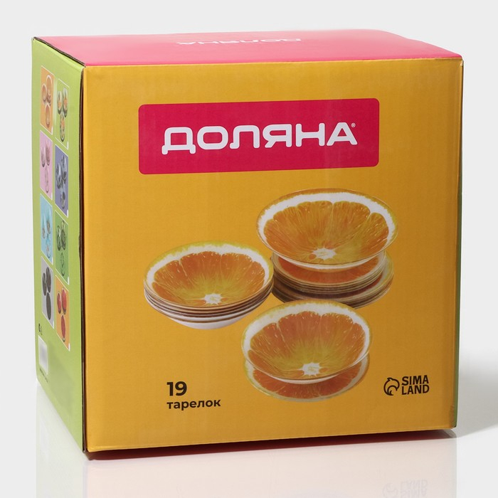 Набор тарелок стеклянных Доляна «Дольче», 19 предметов: 6 десертных тарелок, 6 обеденных тарелок, 6 мисок, салатник