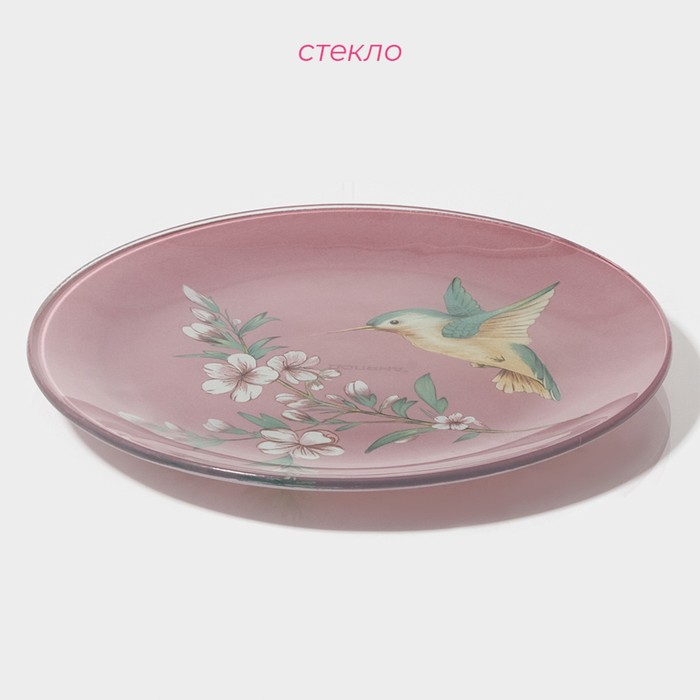 Набор тарелок стеклянных Доляна «Колибри», 19 предметов: 6 десертных тарелок, 6 обеденных тарелок, 6 мисок, салатник