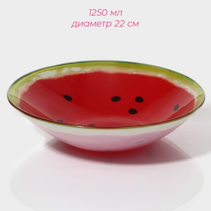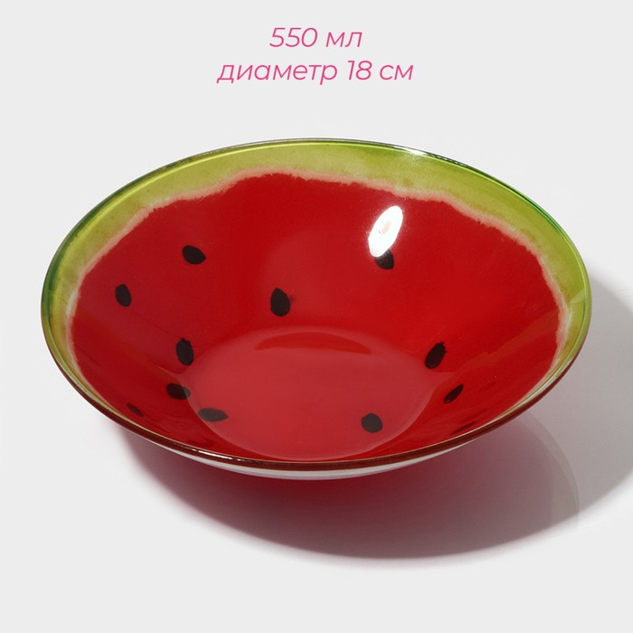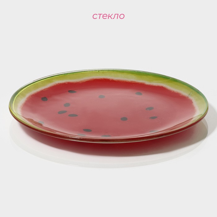 Набор тарелок стеклянных Доляна «Сладкий арбуз», 19 предметов: 6 десертных тарелок, 6 обеденных тарелок, 6 мисок, салатник