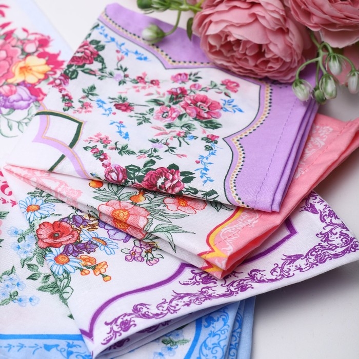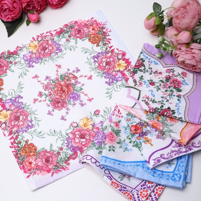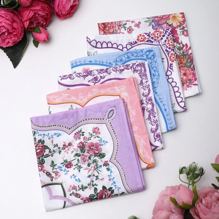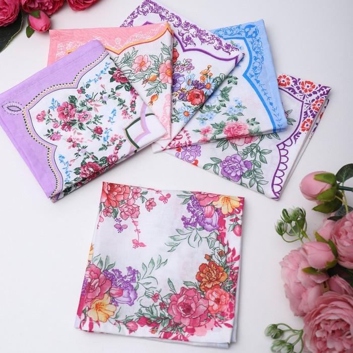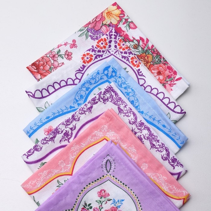 Платок носовой женский 28х28см, 6шт, рис 21218-2, МИКС, ситец 100г/м, хл100%