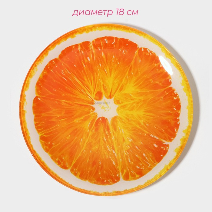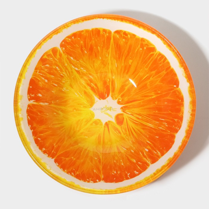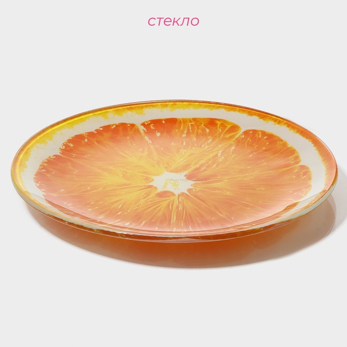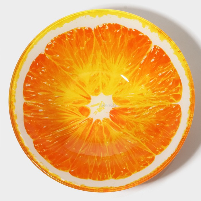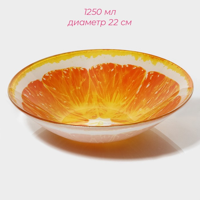 Набор тарелок стеклянных Доляна «Сочный апельсин», 19 предметов: 6 десертных тарелок, 6 обеденных тарелок, 6 мисок, салатник