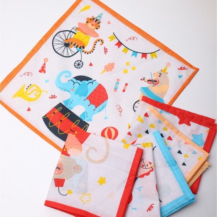 Платок носовой детский 28х28см, 6шт, рис 64092-1, МИКС, ситец 100г/м, хл100%