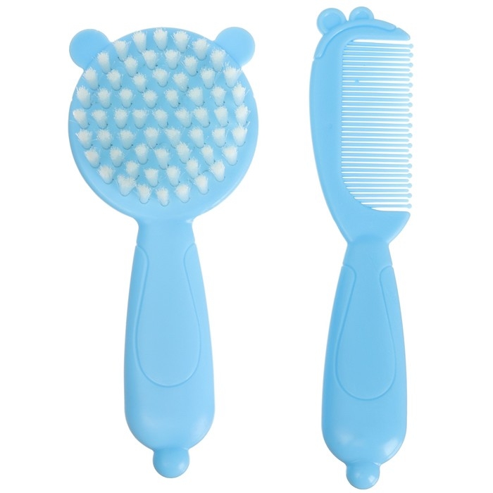 Набор для ухода за волосами: расческа и щетка «Мишка», цвет голубой