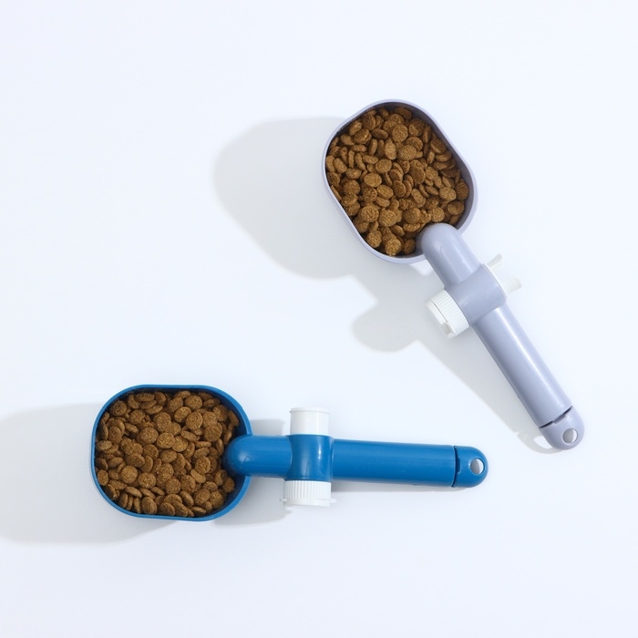 • На совке предусмотрено специальное отверстие для легкого высыпания корма в миску