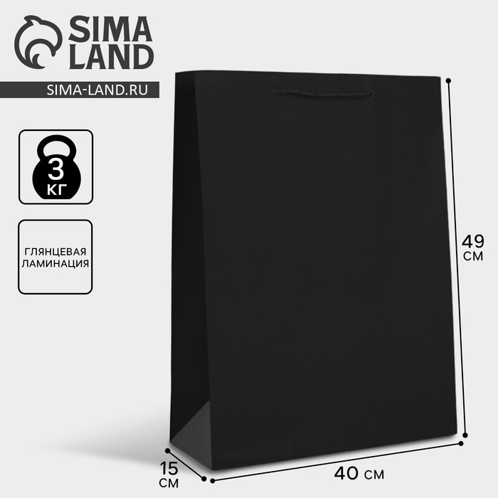 Пакет подарочный ламинированный, упаковка, «Чёрный», 40 х 49 х 15 см