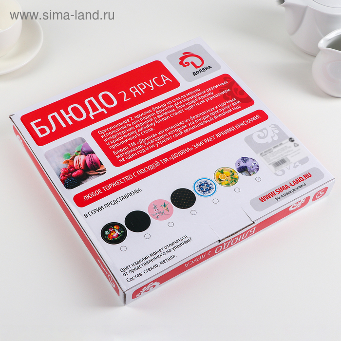 Оригинальное 2-х ярусное блюдо придаст современный вид любому столу. Блюдо можно использовать для подачи фруктов и различных кондитерских изделий. Благодаря красочному дизайну эта посуда станет чудесным украшением праздничного стола и дополнит Ваш интерьер.