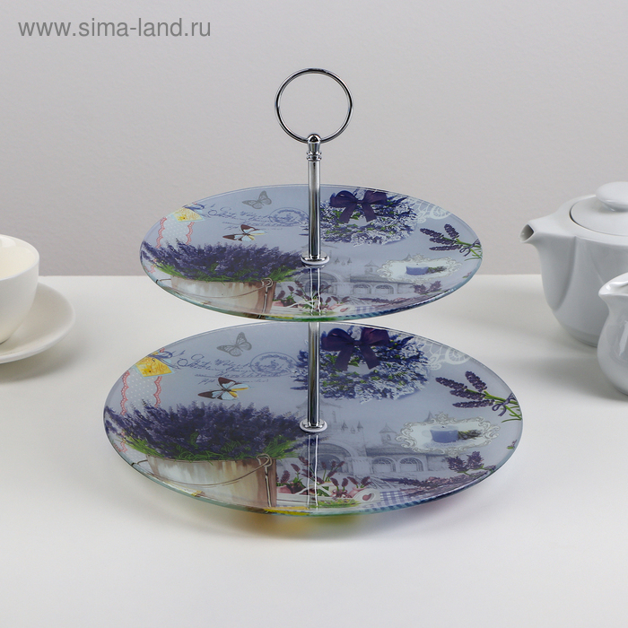 Этажёрка - фруктовница круглая Доляна «Лаванда», 2 яруса, d=25/20 см, стекло, цвет сиреневый
