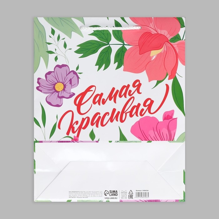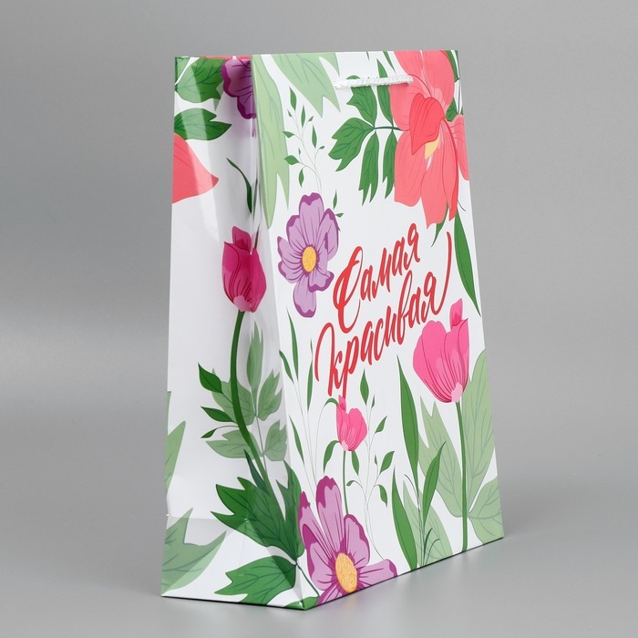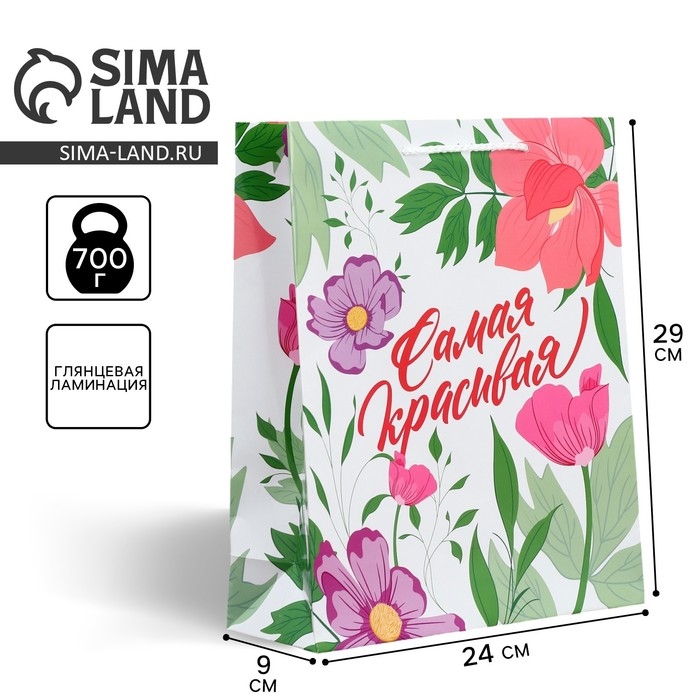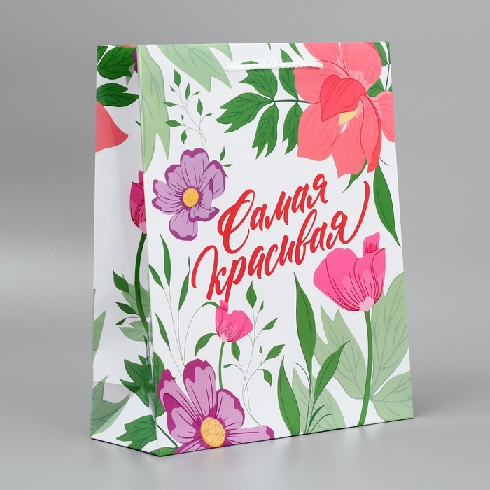 Пакет подарочный ламинированный, упаковка, «Самой красивой», M 24 х 29 х 9 см