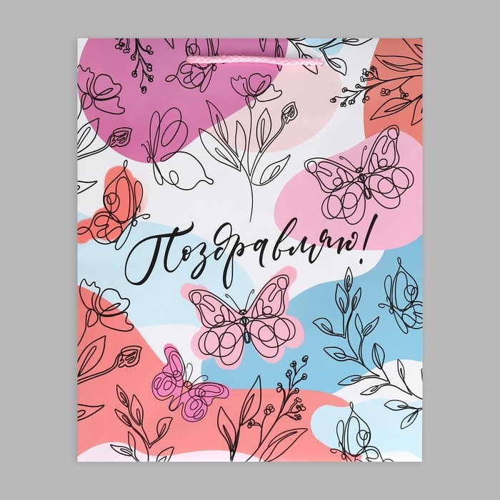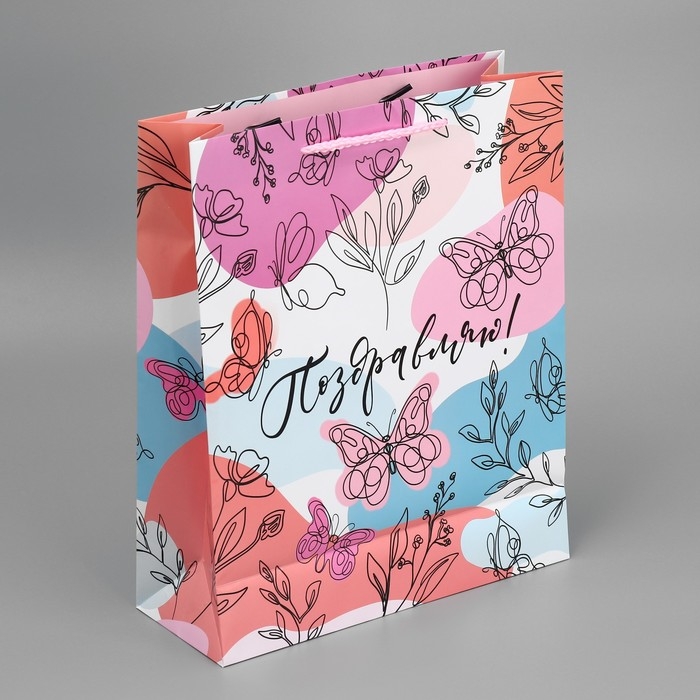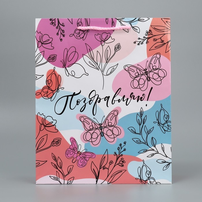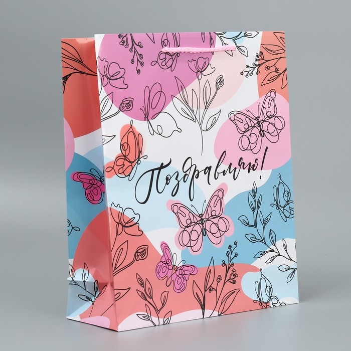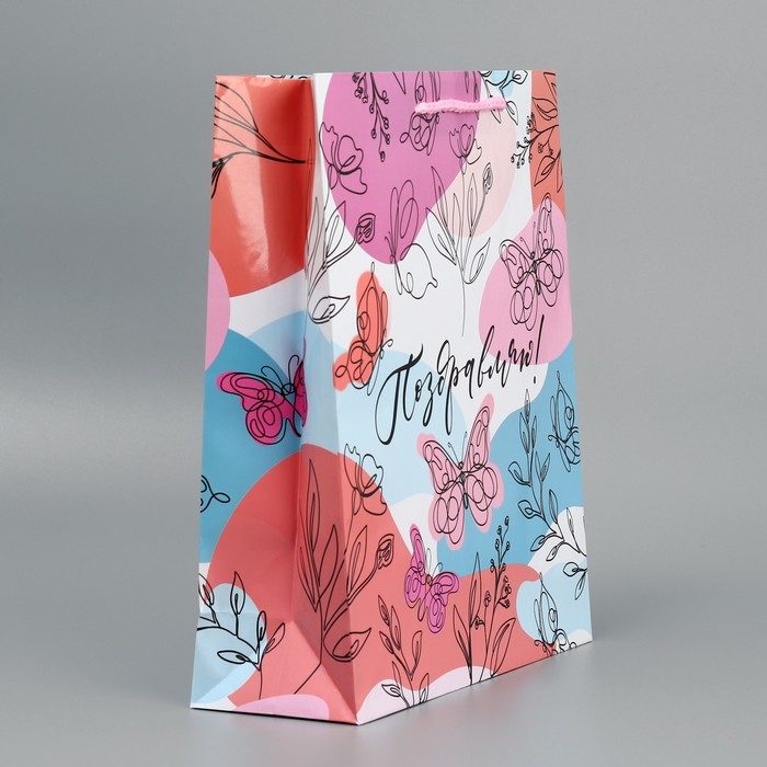 Пакет подарочный ламинированный, упаковка, «Поздравляю!», M 24 х 29 х 9 см
