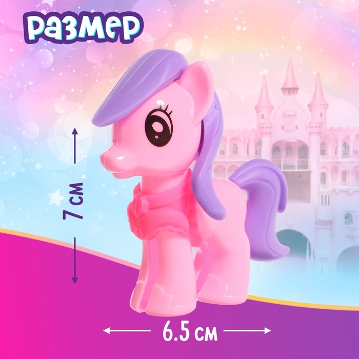 Эта очаровательная игрушка станет прекрасным подарком для юных любителей сказочных существ. Пони высотой 7 см выполнена из безопасного пластика и станет отличным компаньоном для игр. Яркие радужные цвета и множество аксессуаров позволят ребенку создать уникальный образ для своей новой подружки.