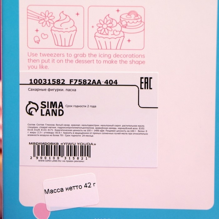 Сахарные фигурки — готовое решение для простого, быстрого и стильного декора любых кондитерских изделий: тортов, пирожных, куличей и других. Специально адаптированы для более длительного нахождения на изделиях с повышенной влажностью (все виды кремов, сливок, гелей, зеркальных глазурей). Подходит для кондитерской продукции недлительного и длительного хранения. Рисунок нанесен на белую основу, что предотвращает миграцию красителя на декорируемую поверхность.