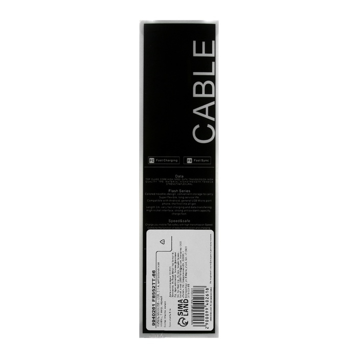 Кабель MicroUSB - USB, 2.1 А, металлическая оплётка, 1 метр, чёрный