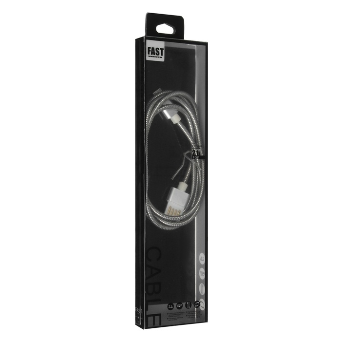 Кабель MicroUSB - USB, 2.1 А, металлическая оплётка, 1 метр, серебристый