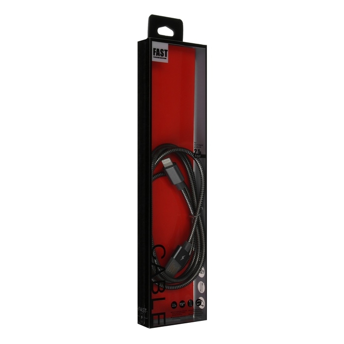 Кабель Lightning - USB, 2.1 А, металлическая оплётка, 1 метр, чёрный