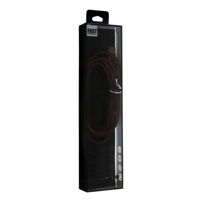 Кабель Lightning - USB, 2.1 А, оплётка нейлон, 1 метр, красный