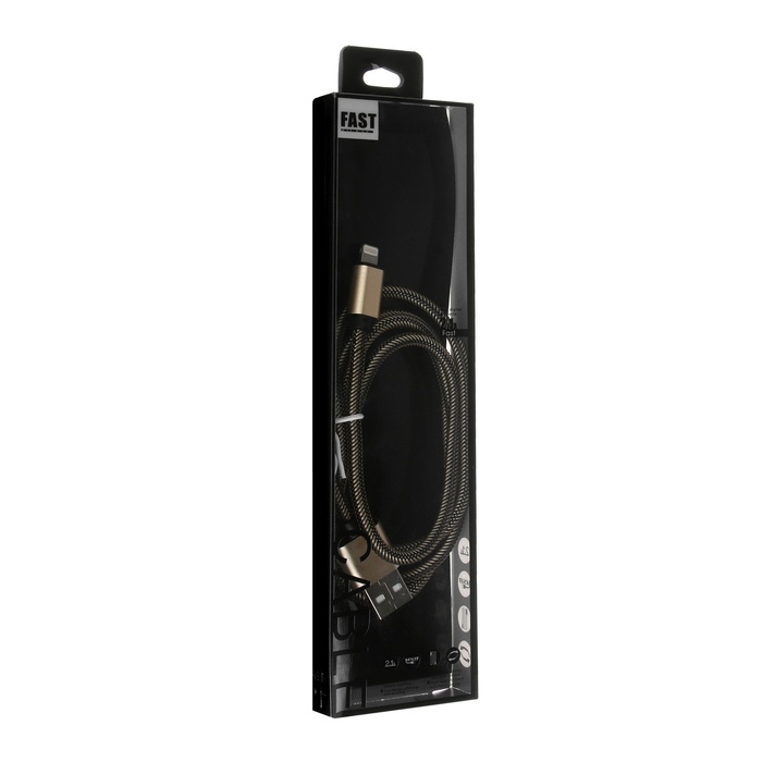 Кабель Lightning - USB, 2.1 А, оплётка нейлон, 1 метр, золотистый