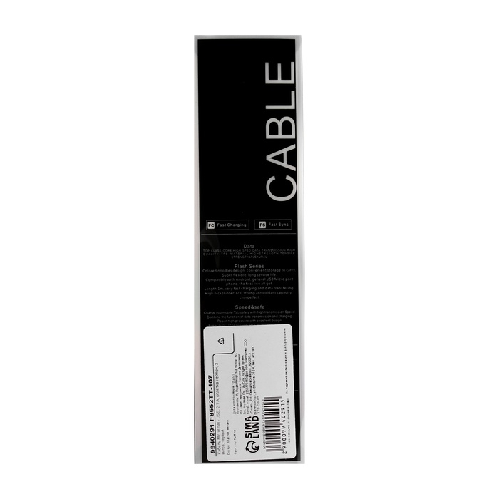 Кабель MicroUSB - USB, 2.1 А, оплётка нейлон, 2 метра, чёрный
