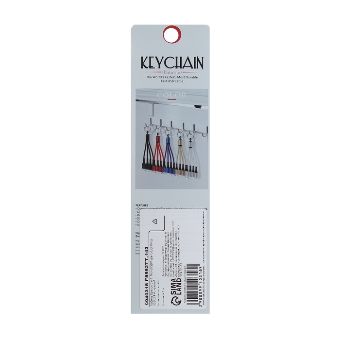 Кабель брелок 3 в 1, MicroUSB/Type-C/Lightning - USB, 2.4 А, красный