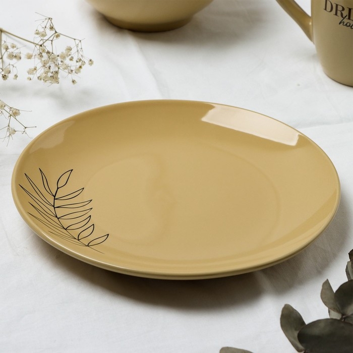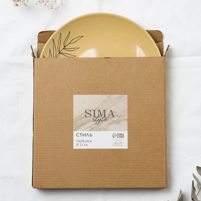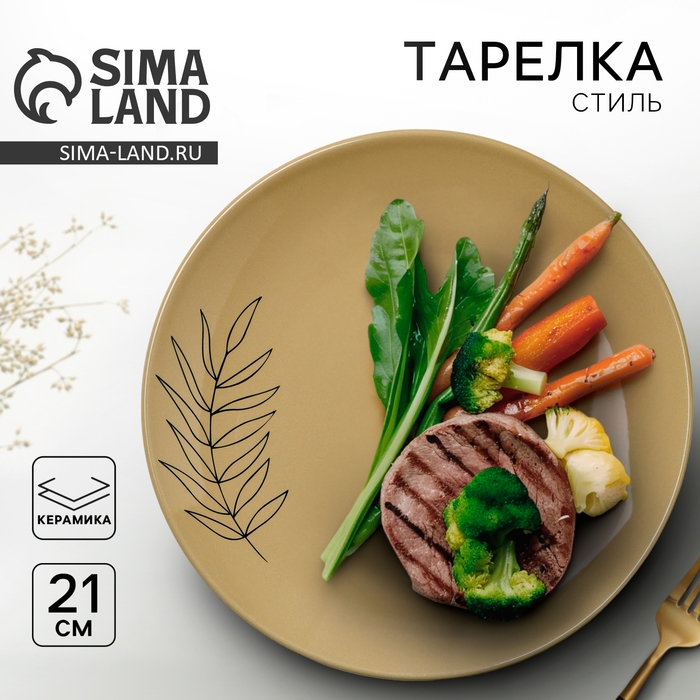 Тарелка керамическая «Стиль», 21 см, цвет бежевый