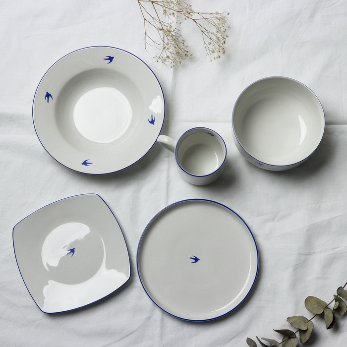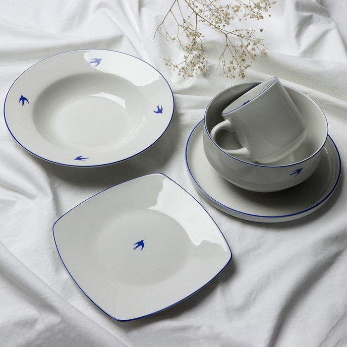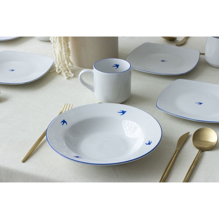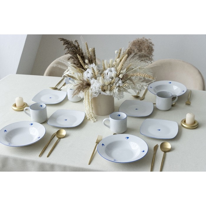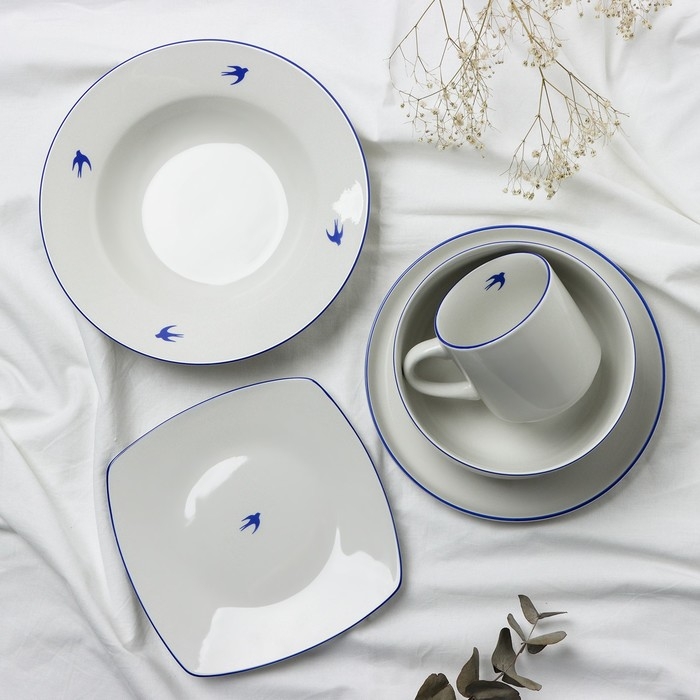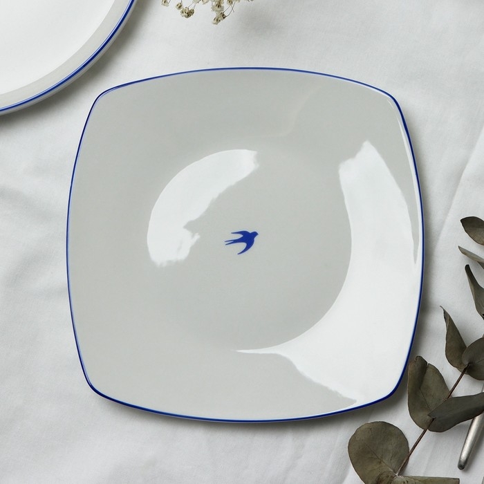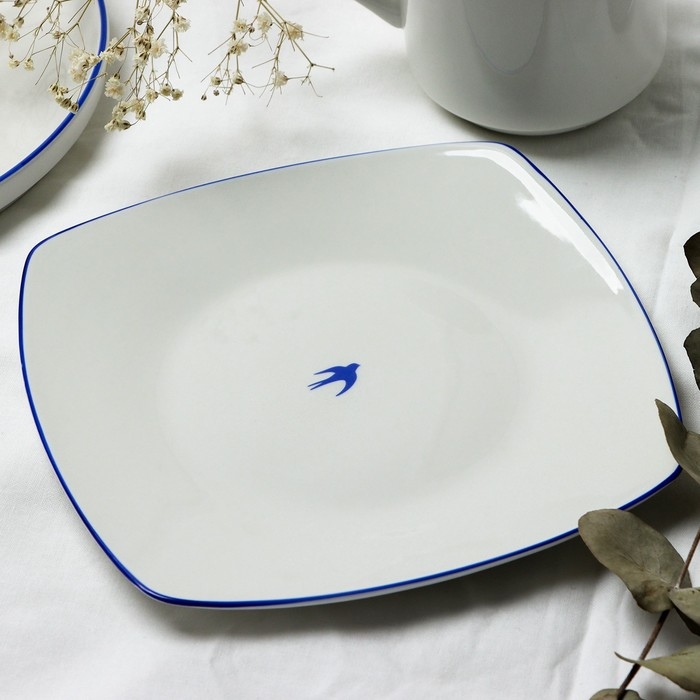 Тарелка плоская керамическая «Ласточка», 18 х 18 см, цвет белый