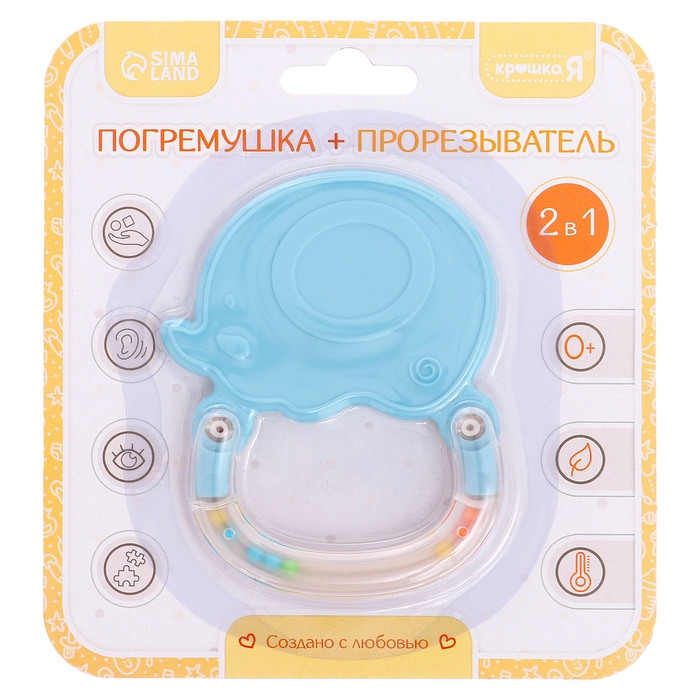 Погремушка «Слоник», с прорезывателем для зубов, пищевой силикон