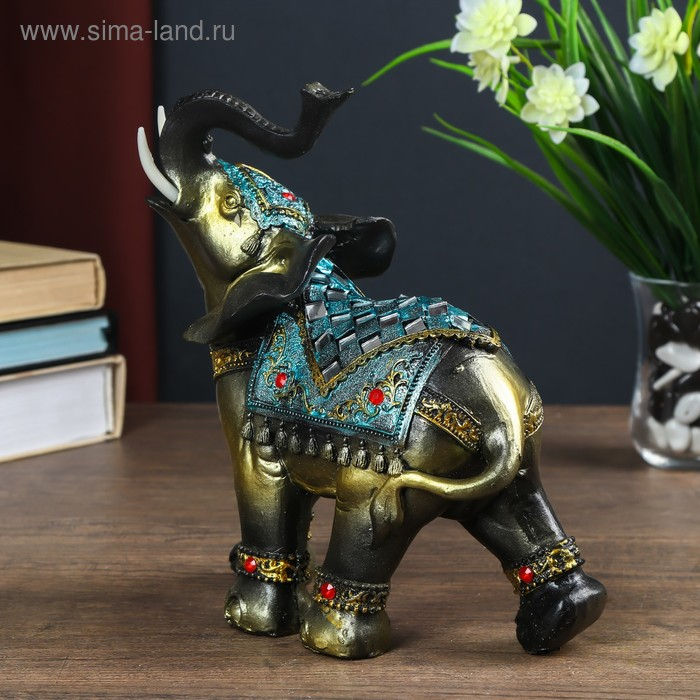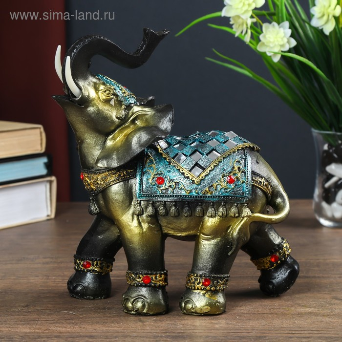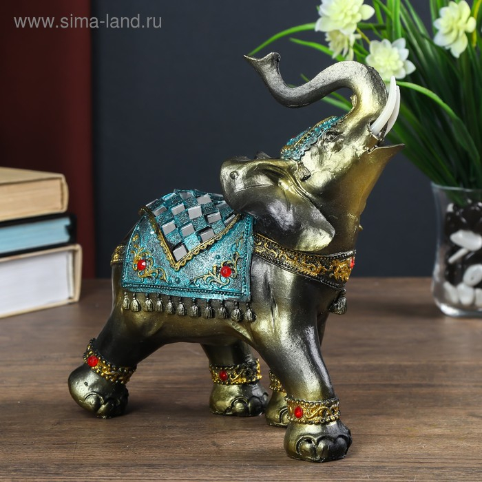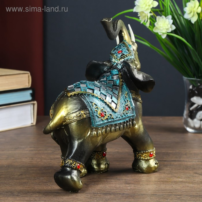 Сувенир полистоун "Слон в синей попоне с кистями и зеркалами" 20х10х18,5 см