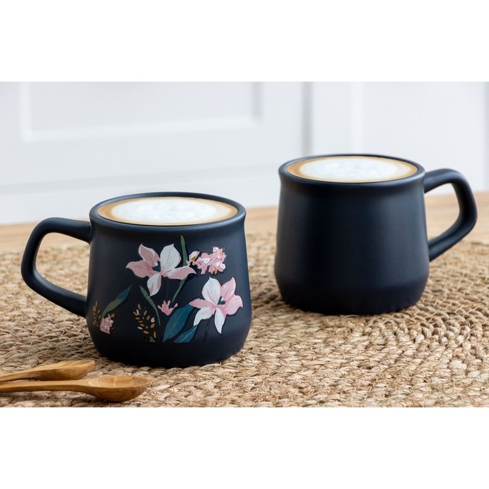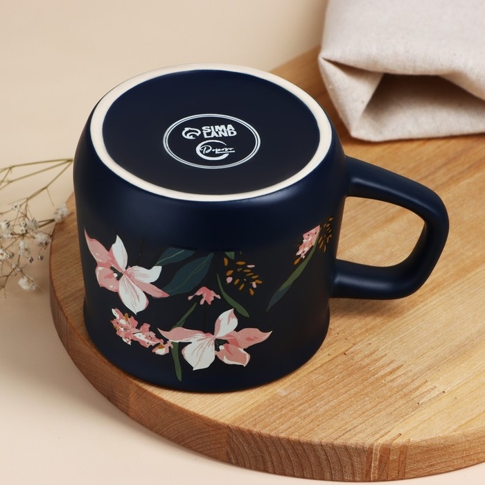 Кружка керамическая «Цветы», 380 мл, цвет синий