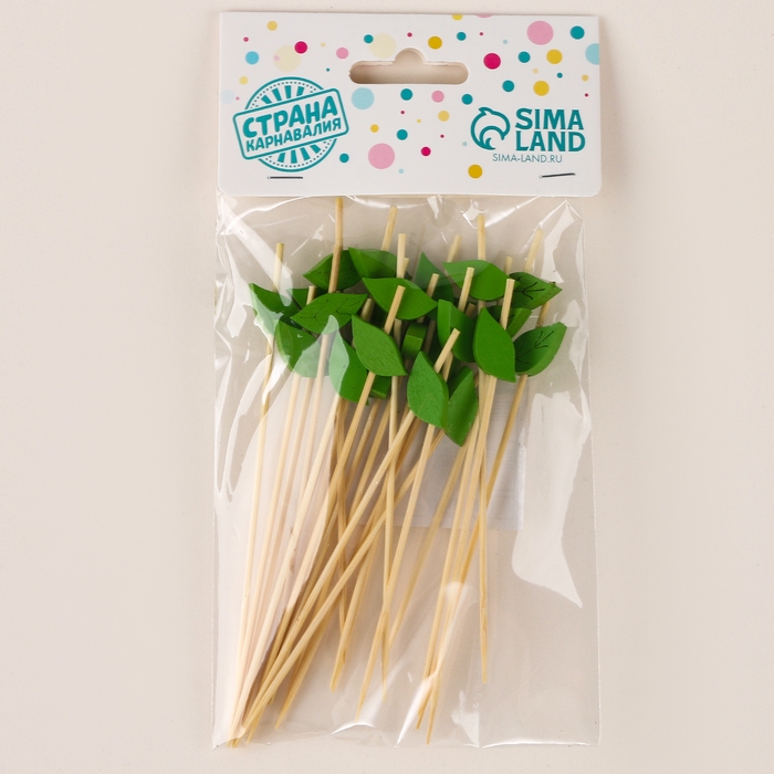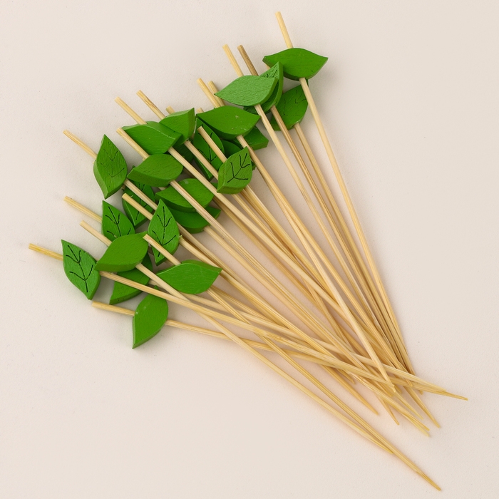 Шпажки для канапе «Листья» набор 24 шт., цвет зелёный