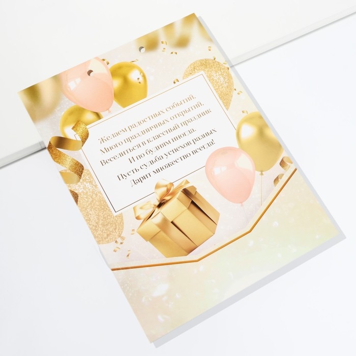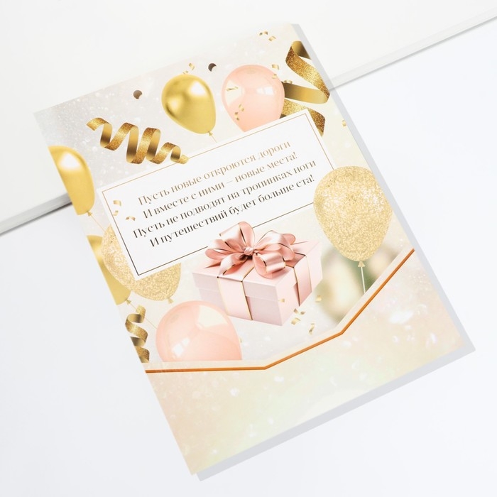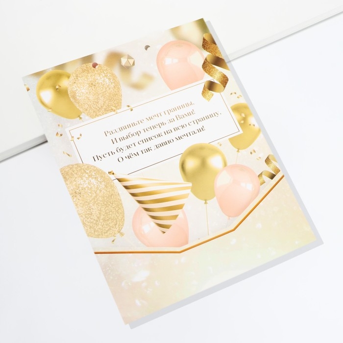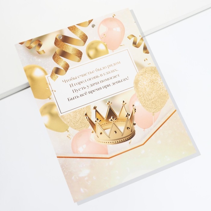 Дизайнерская открытка состоит из 6 листов. На каждой странице с тёплыми пожеланиями располагается индивидуальный конверт. Положите внутрь банкноты — и мечты именинника станут явью. Преподносите денежный подарок оригинально!.