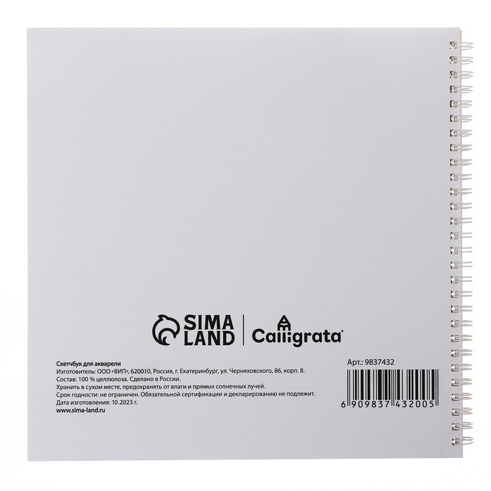 Скетчбук для акварели 250х250 20л 180г/м² на гребне Calligrata, обл мел карт