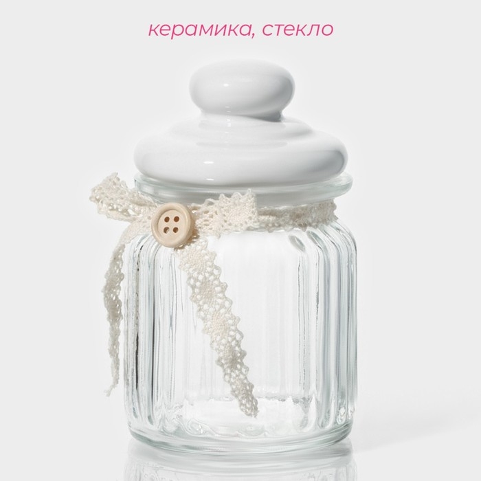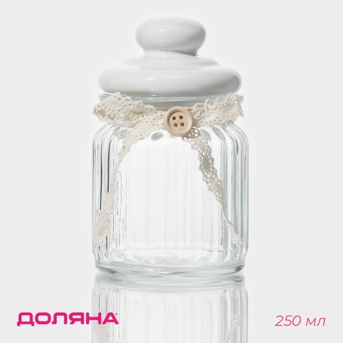Банка стеклянная для хранения сыпучих продуктов Доляна «Варенье», 250 мл, 8×13 см, с керамической крышкой
