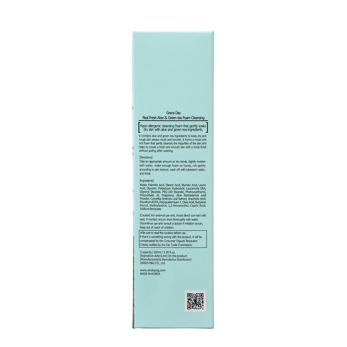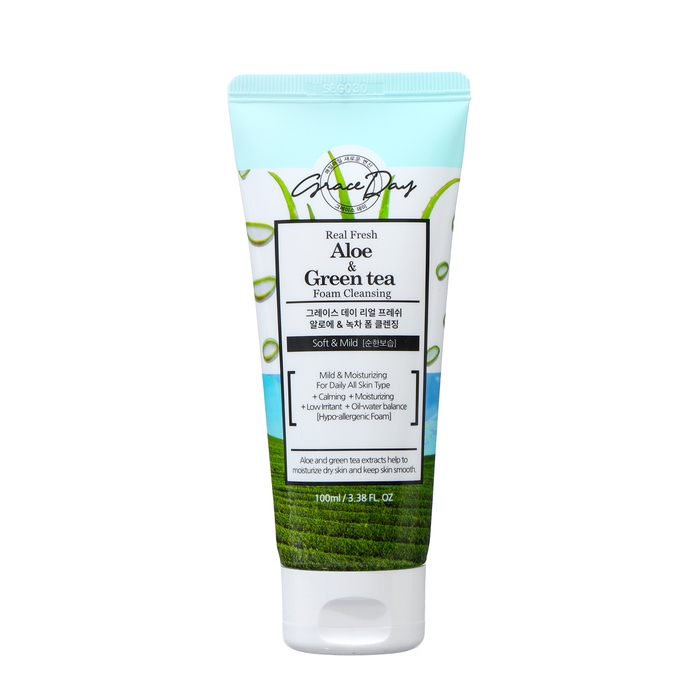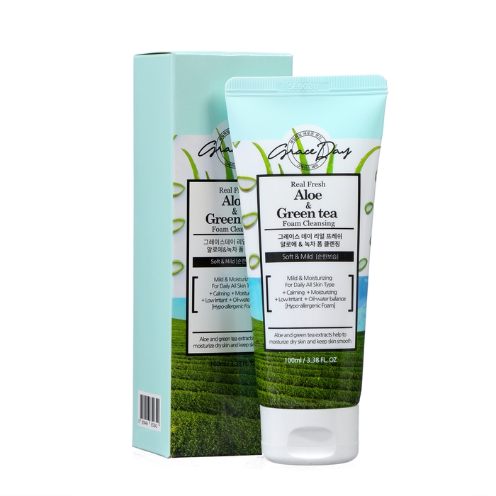 Пенка для лица Grace Day, освежающая и очищающая, с алоэ и зеленым чаем, 100 мл