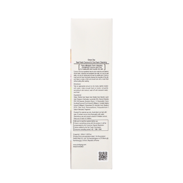 Пенка для лица Grace Day, освежающая и очищающая, с кокосом и центеллой азиатской, 100 мл
