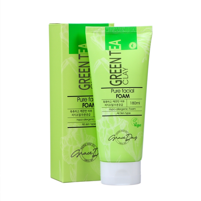 Пенка для лица Grace Day, очищающая, с зеленой глиной, 180 мл
